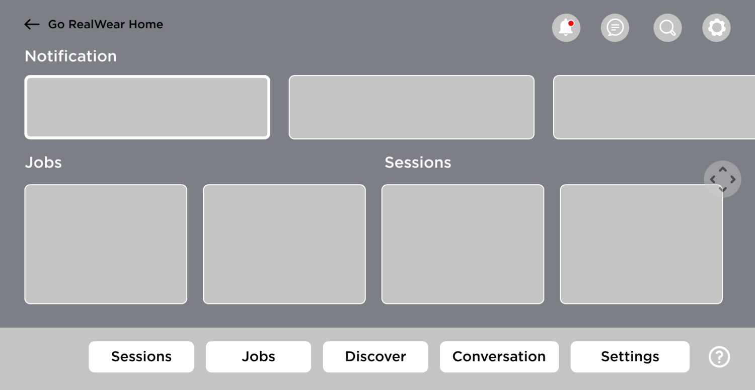 If I was designing purely for RealWear, I would depend heavily on voice commands and head motion as the interaction model for navigating the application. I would also leverage the drawer along the bottom for additional actions per screen.